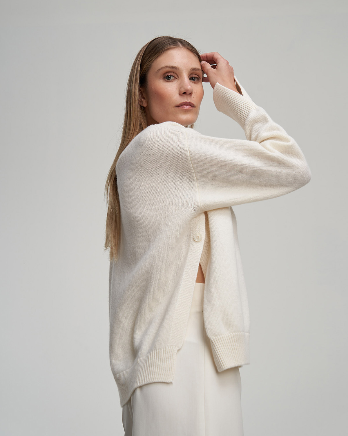 The MICHELA sweater combines the elegance of merino wool with the modernity of a unique design. Soft, warm, and breathable, this garment stands out for its exclusive details: a delicate opening on one side and on the cuffs, creating a play of subtle asymmetries. Perfect for those seeking a balance between classic and contemporary style, MICHELA is designed to offer a piece with a touch of originality.
