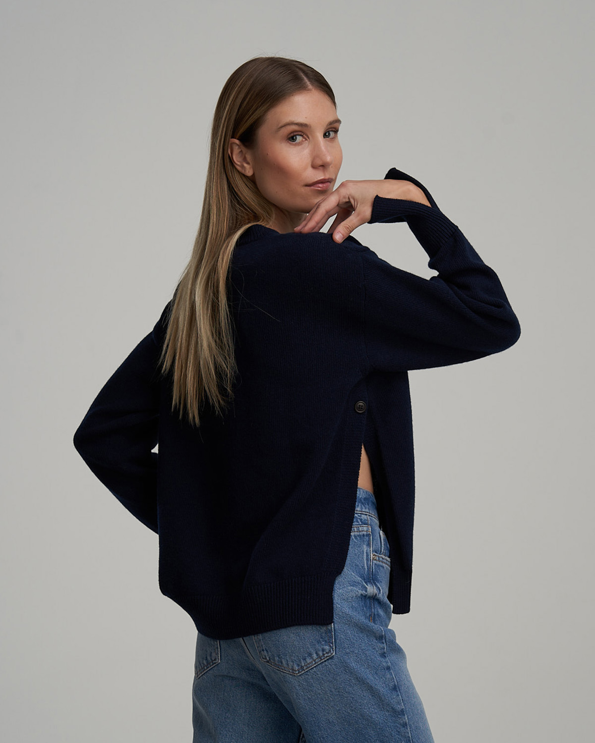 The MICHELA sweater combines the elegance of merino wool with the modernity of a unique design. Soft, warm, and breathable, this garment stands out for its exclusive details: a delicate opening on one side and on the cuffs, creating a play of subtle asymmetries. Perfect for those seeking a balance between classic and contemporary style, MICHELA is designed to offer a piece with a touch of originality.