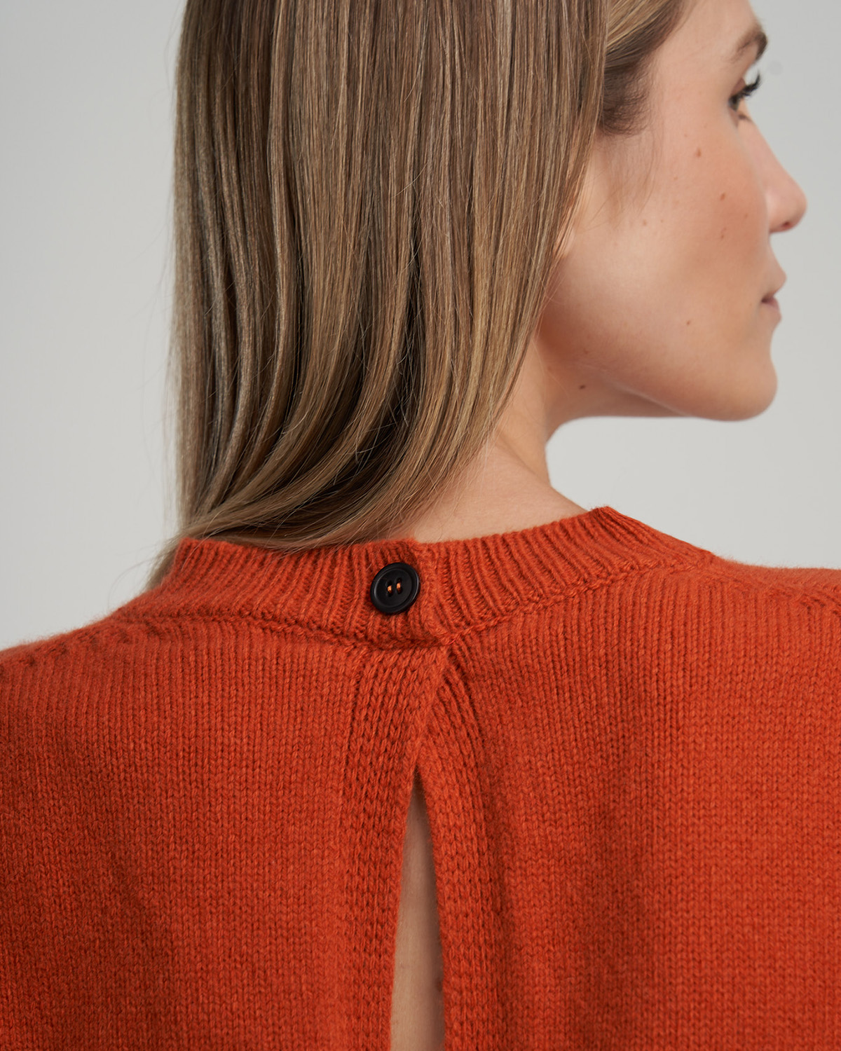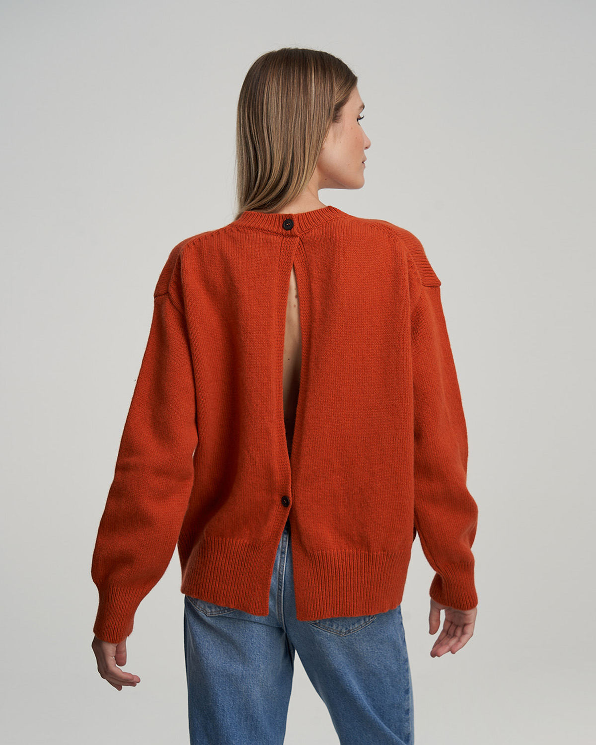 Maglione girocollo con apertura sulla schiena.