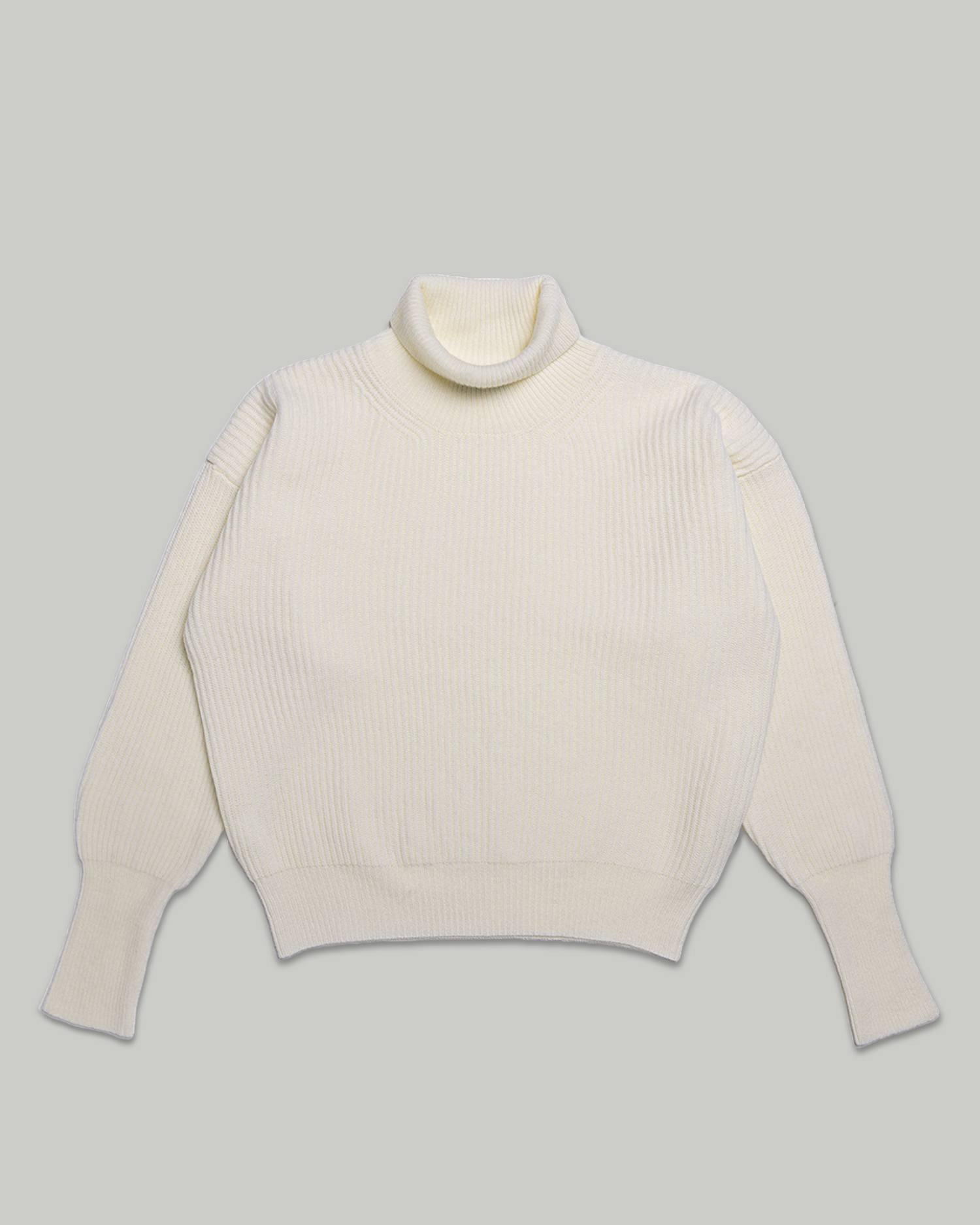 Questo capo è realizzato in lana merino extrafine RWS che rappresenta la sigla di una certificazione di qualità del filato per il rispetto dell’ambiente e il benessere animale. Grazie alla sua lavorazione punto a coste, il maglione GIULIA si distingue per la sua texture unica e raffinata, rendendolo un vero capo artigianale.